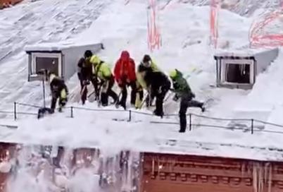В Москве замечены экстремальные чистильщики крыши