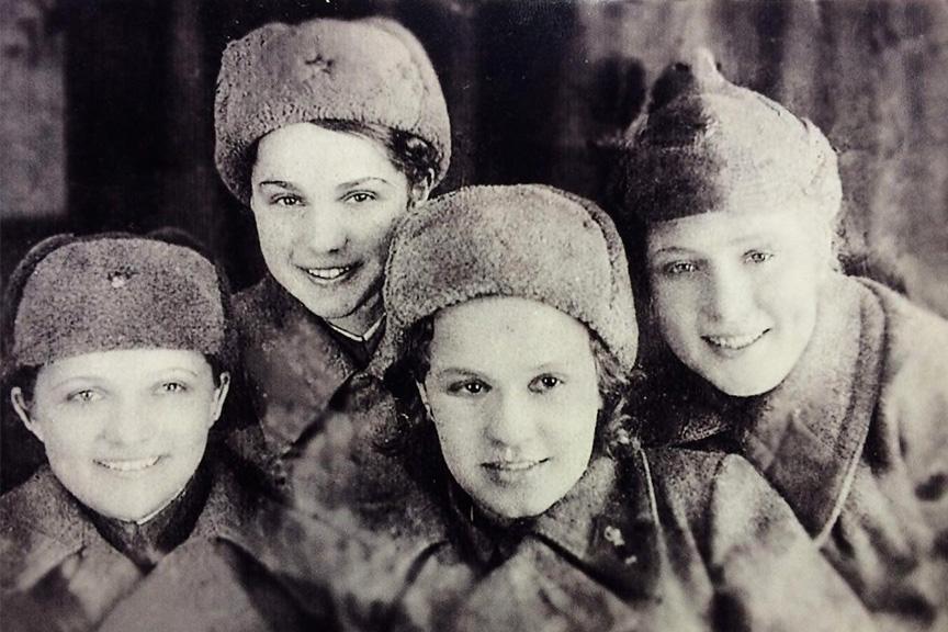 Юлия Гулина (крайняя справа) с боевыми подругами, 1942 год