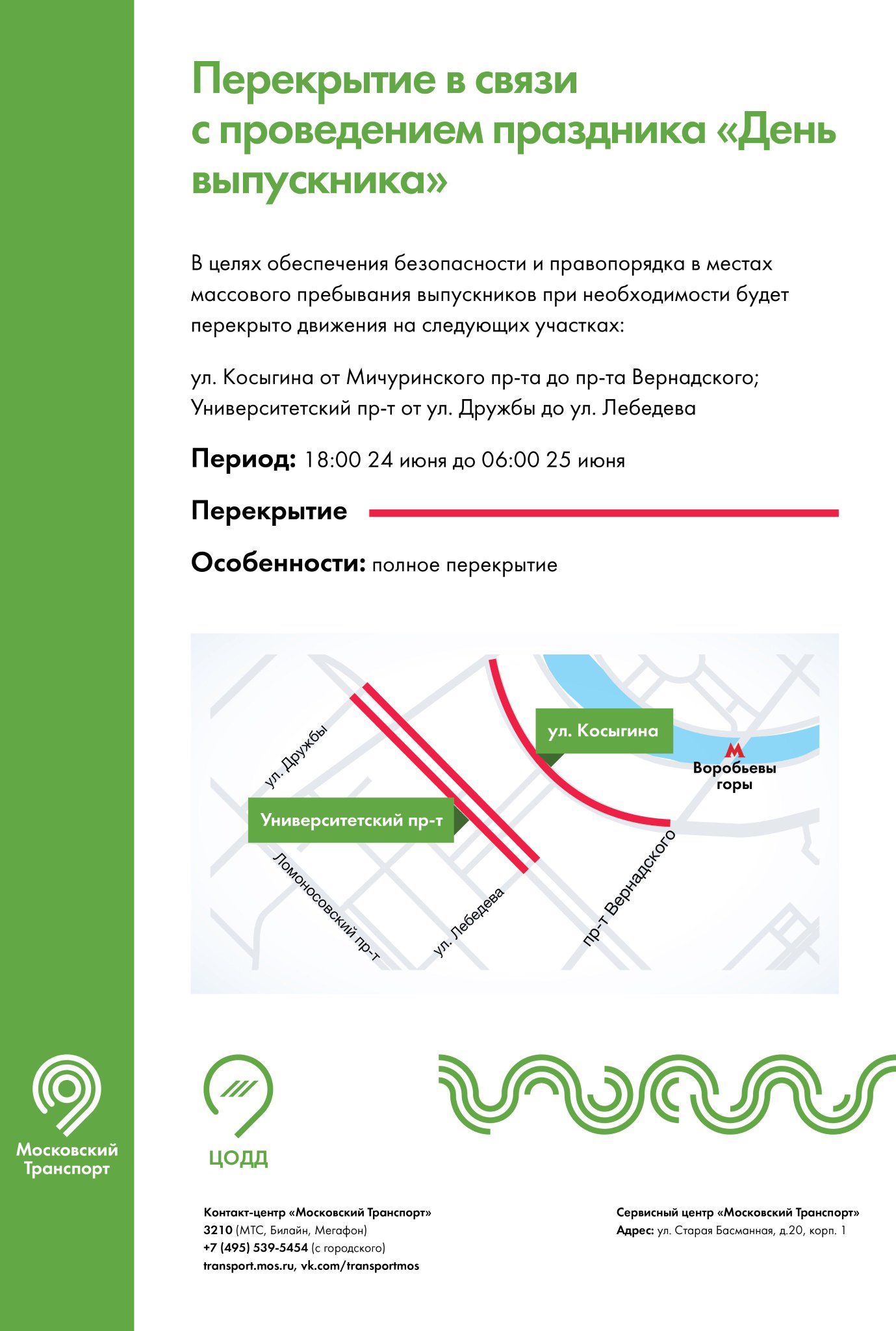 Улица Косыгина — полное перекрытие движения до 6 утра субботы на участке от Мичуринского пр-та до пр-та Вернадского