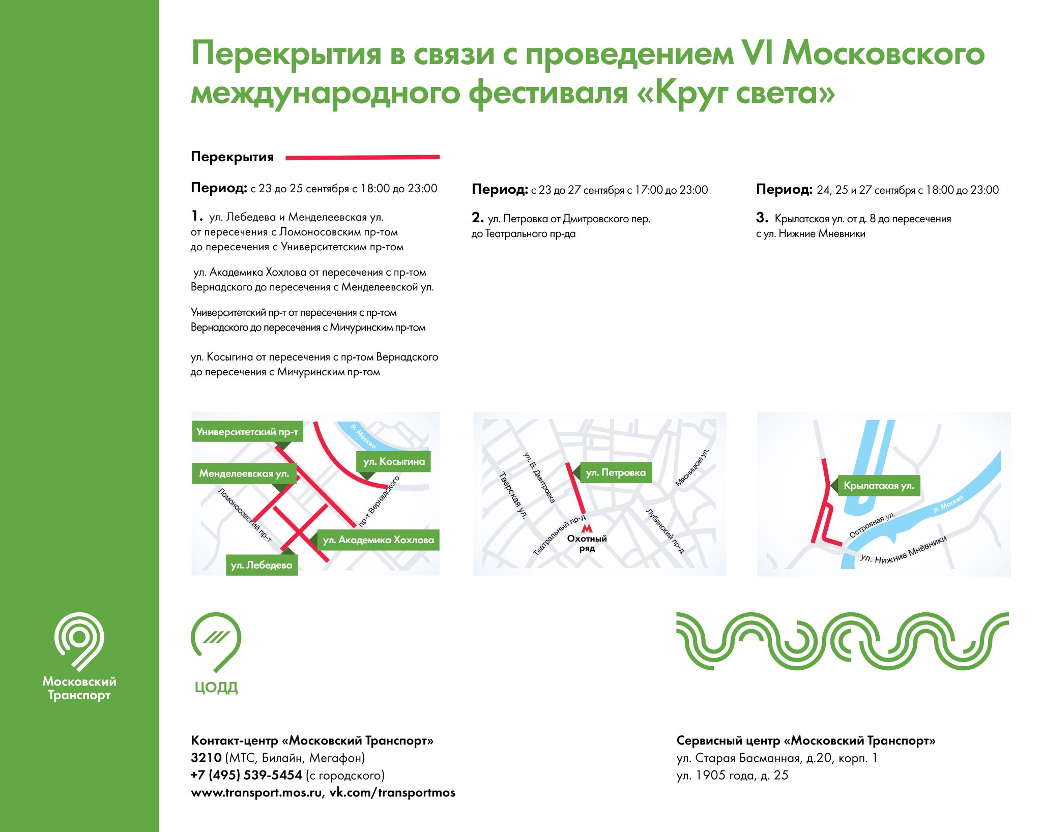 Перекрытия в связи с проведением VI Московского международного фестиваля «Круг света»