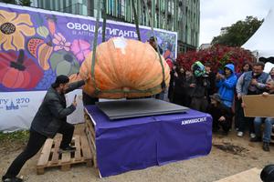 Фермер из Подмосковья вырастил тыкву-гигант весом почти в тысячу килограмм