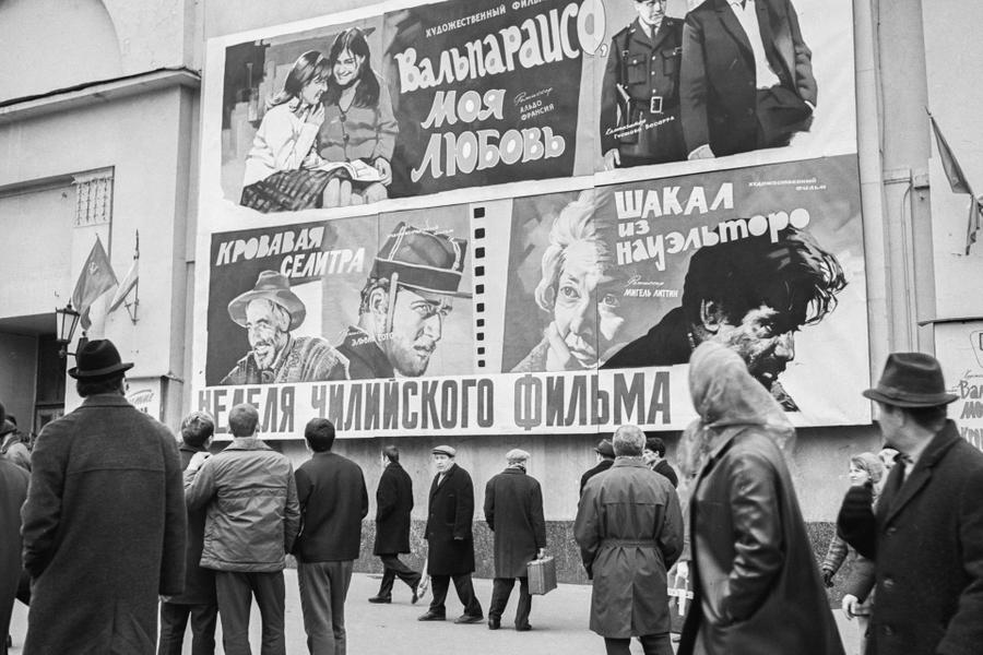 26 октября 1970 г. Зрители у здания кинотеатра «Художественный» на Арбатской площади во время недели чилийского фильма.