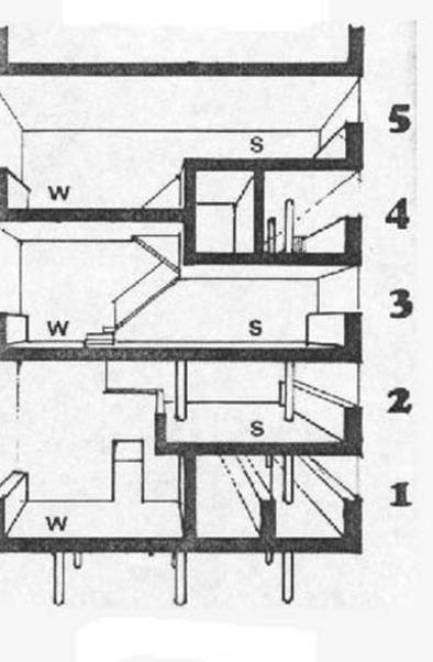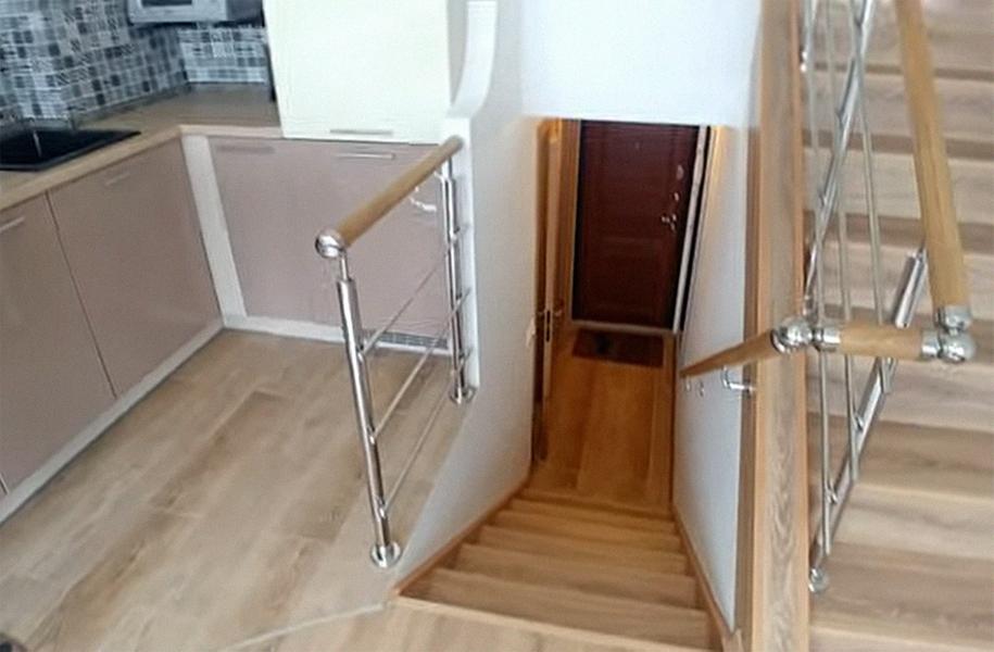 Квартиры здесь многоуровневые, двух типов. Они похожи, как зеркальные отражения. В «верхних» из прихожей с туалетом вы поднимаетесь по лестнице в гостиную со встроенной кухней и лестницей в спальню с душем. В «нижних» квартирах вы из прихожей в гостиную спускаетесь.