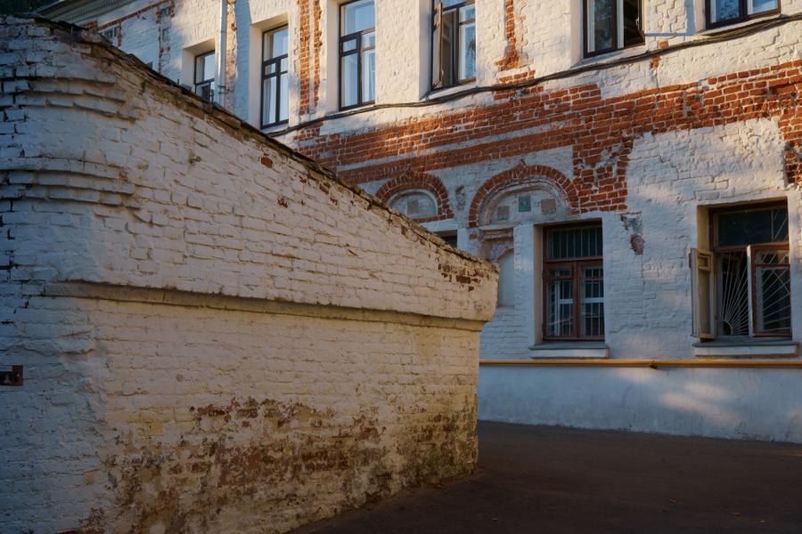 У нас очень прогрессивный, европейский подход к реставрации — минимальное воссоздание утраченного декора. Мы сохраняем то, что до нас дошло. Обычно стёсанный декор заменяют новым реставрационным кирпичом, как бы воссоздавая объём. Но наш фасад — как археологический памятник. Его такая реставрация просто уничтожит. Когда создают имитацию, экскурсоводы потом говорят: «Вы видите прекрасно сохранившиеся палаты». Они забывают о том, что все заново построено, это фактически такая модель, выполненная в наше время.