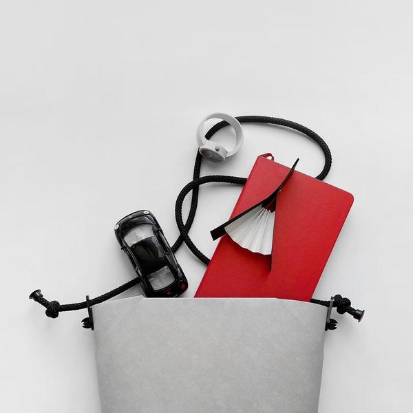 Эта сумка награждена премией Red Dot Award: Product Design — 2021. Спроектированная без единого шва безотходная выкройка полностью собирается на четырех винтовых креплениях из цельного листа крафтовой бумаги.