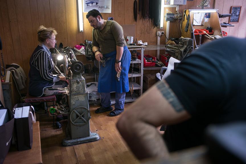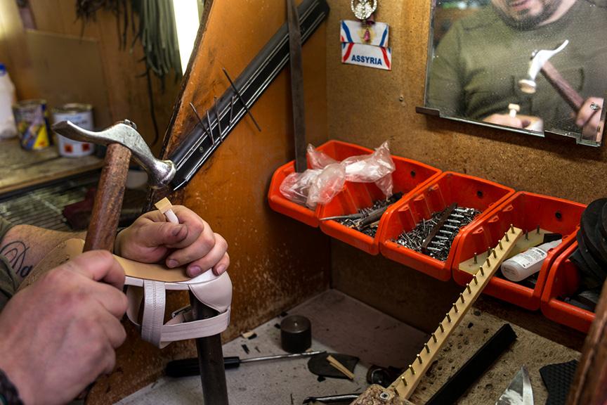 Раньше люди приходили в мастерскую в основном чтобы набойки поставить, почистить и подкрасить обувь. К нам и сейчас ходит один ветеран войны, — видно, что его ботинкам лет двадцать, но до сих пор кожа на них — не скажу как новая, но нормальная. Мы ему подбиваем, рубцы ставим с той стороны, которую снашивает, и все. Сейчас такой обуви никто не делает. А к нам разную приносят. Есть, например, клиент, которому шьют John Lobb в Европе.