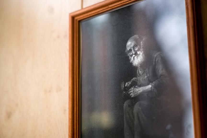 На старых фотографиях сапожников, которые я повесил на стенах, такие же шила, как у меня. Вот у меня старый тяжелый «гусь» с кривой шеей — на него надевается сапог, когда нужно ремонтировать переднюю часть, а сам «гусь» фиксируется на конторке. Вот «пятак» (металлическая палка — прим. МОСЛЕНТЫ) для ремонта задней части ботинка. Смягчаем пятку из жесткой кожи мы обычным молотком. Так что в целом ничего не меняется.