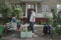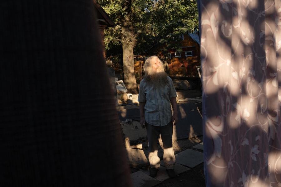 Валерий Аникеев перед домом, где живет с сыном Борисом