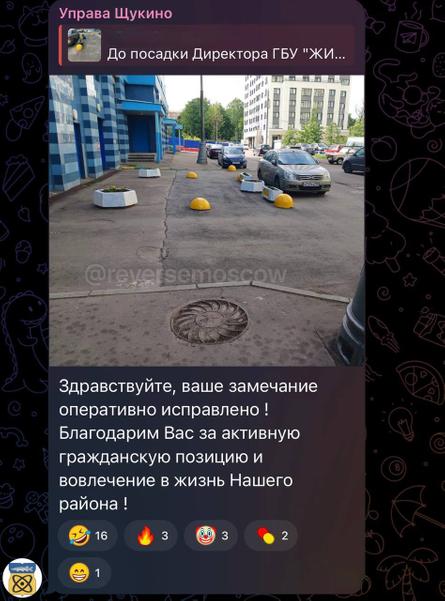 «До посадки директора ГБУ "Жилищник района Щукино" и главы Управы района Щукино недалеко», — написал юзер районного паблика.