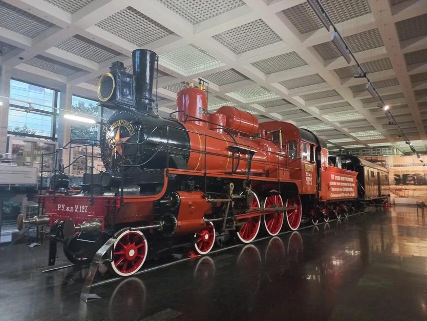Паровоз У-127 и багажный вагон № 1691 в музее Московской железной дороги. 2024 год