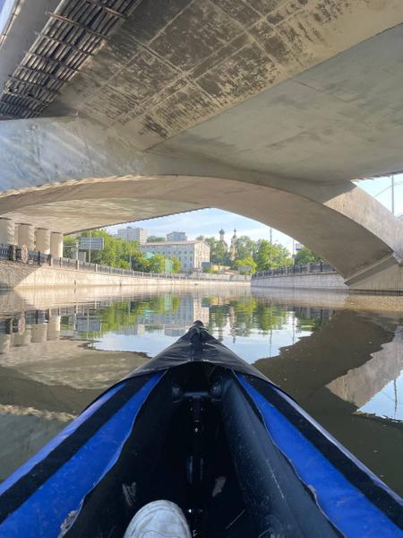 Весь маршрут не каждый осилит. Стоит пройти клевые куски — от МКАДа до Ботанического сада, после которого мы как раз и пробили лодку, и от Ростокино до Преображенки, а там можно паковаться — либо, как мы, взять каршеринг, либо попросить, чтобы кто-то вас встретил, либо заказать такси. Хотя при спортивном настрое можно и пешком и на общественном транспорте с лодкой передвигаться. В сложенном виде она вместе с рюкзаком весит 18 килограммов.