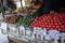 Азербайджанские гранаты на прилавке в рядах с овощами и фруктами
