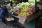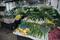 Овощные ряды с навесами над лотками в открытой части Преображенского рынка