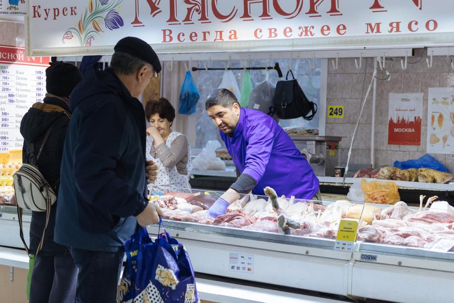 Позавчера покупали там мясо — это, наверное, самая вкусная говядина, которую я ел. За полтора килограмма отдал 800 рублей, при цене 750 за килограмм. Рязанские молодцы в рубахах и с огромными топорами рассказали нам, что уже полежало, а что только недавно порубили, сделали скидку и все в результате остались довольны. Так что ценообразование происходит спонтанно, но итоговая цена всегда ниже, чем в магазине».