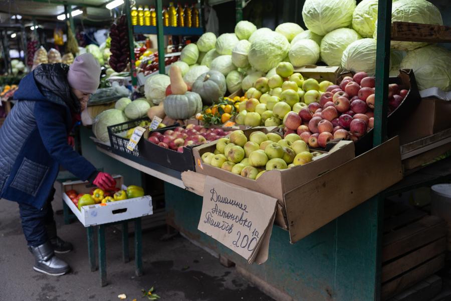 Запах стоял удивительный — кислой капусты, огурцов соленых. Старушки-колхозницы торговали яблоками».
