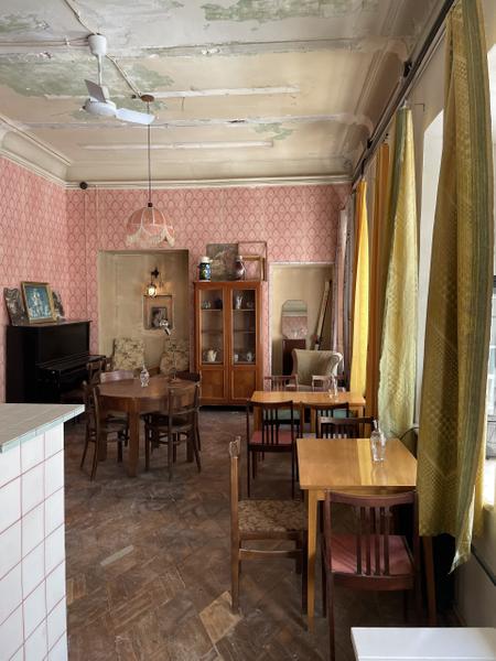 Это здание — пример того, как мы зашли, а дальше каждое пространство начало диктовать свою историю. У Никиты заведение с пастой, «Аренда» — это вообще эклектичный европейско-советский замес. Подвал получается французский, с моей комнатой, которая как капля Тбилиси, но коридор-то однозначно из коммунального общежития.