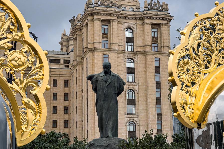 Памятник украинскому поэту и писателю Тарасу Шевченко возле гостиницы «Украина»