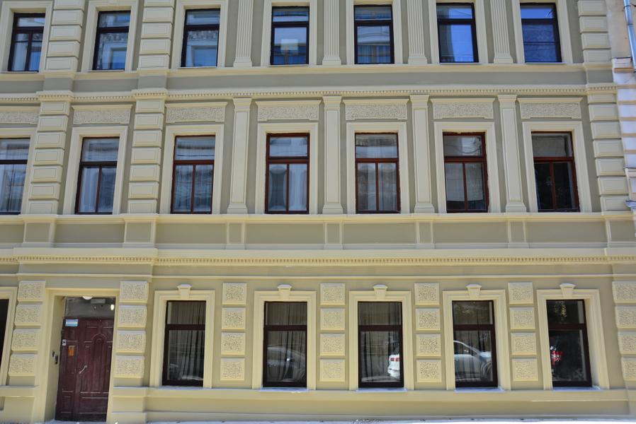 Несколько лет назад это пятиэтажное здание поставили на охрану, и теперь оно везде фигурирует, как «Дом, в котором в 1897-1901 годах жил Петр Николаевич Лебедев». Построен он в 1880-м, неоднократно перестраивался и до революции, и в советские годы.