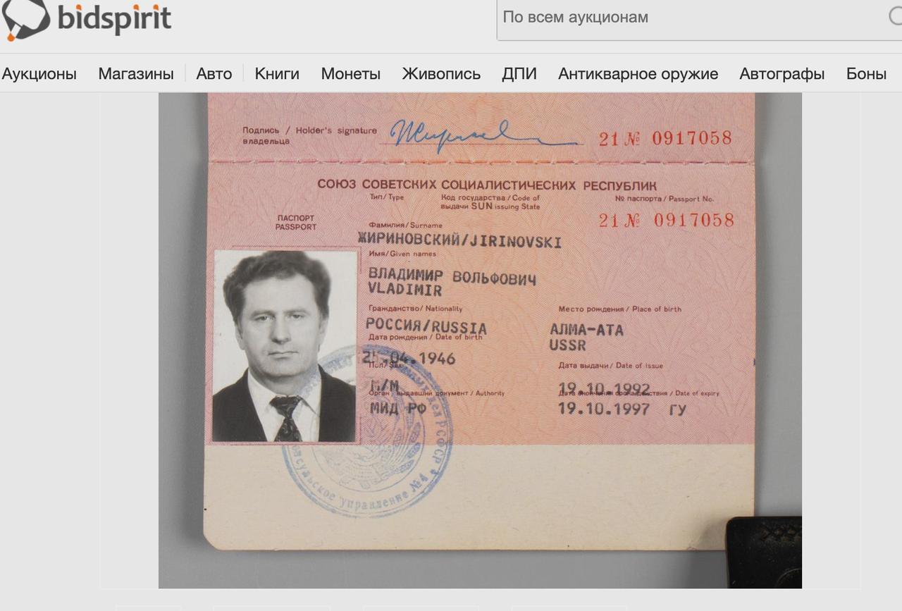 Загранпаспорт Жириновского продали на аукционе больше, чем за миллион!