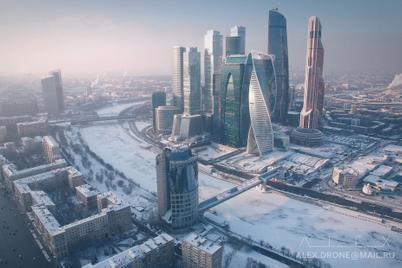 Заснеженная Москва с высоты птичьего полёта