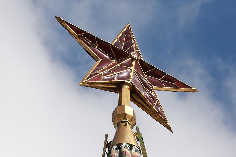 В октябре 1935-го ободранных от позолоты орлов выставили на показ в парке Горького рядом с подсвеченными новыми звездами на красных кумачовых пьедесталах. С 24 по 27 октября звезды смонтировали в Кремле и подсветили.