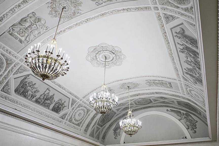 В годы советской власти в здании находился музей революции. Неоднократно проводившиеся тут ремонтные работы имели мало общего с современным подходом, при котором во главу угла ставится реставрация исторического вида интерьеров и фасадов. На одной из стен библиотеки специально сохранен не закрашенный фрагмент, где можно видеть обнаженные реставраторами цвета предыдущих окрасок, всего около двадцати: от белого и бежевого до розового и лимонного.
