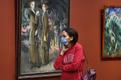 Посетительница возле картины Михаила Врубеля «Демон (сидящий)» (1890 год) на выставке «Михаил Врубель», приуроченной к 165-летию со дня рождения художника, в Новой Третьяковке на Крымском Валу в Москве