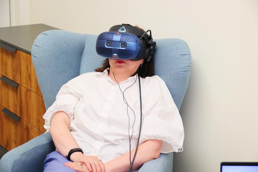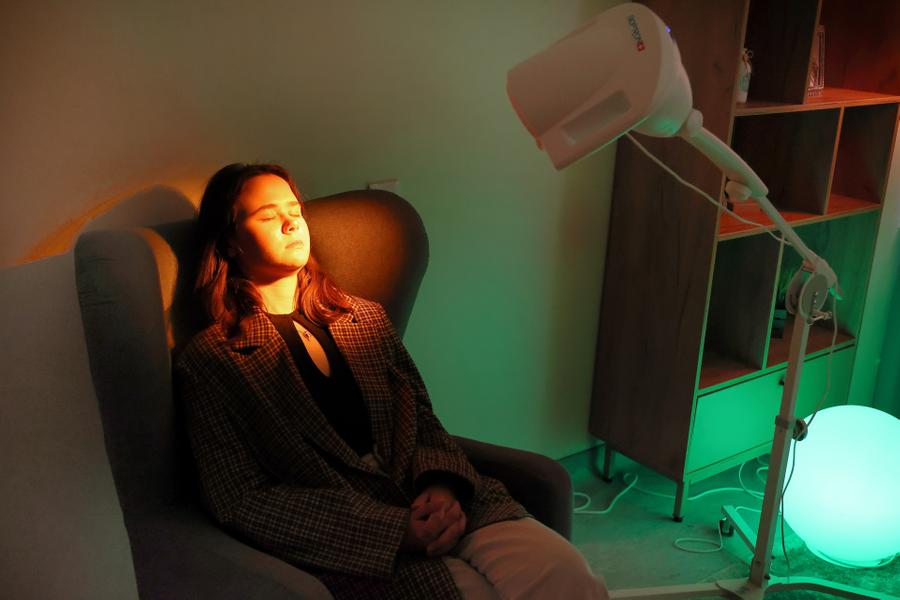 У нас есть VR-очки, которые также помогают улучшить эмоциональную саморегуляцию, работать с тревогой, напряжением, беспокойством. Есть аппарат для проведения светотерапии — это имитация солнечного света без ультрафиолета. Такие сеансы помогают наладить сон, улучшить настроение и усилить активность в течение дня, если у посетителя слабость, утомляемость.