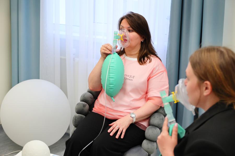 Есть аппарат для проведения электросна для людей, страдающих бессонницей. Мы также можем задействовать аппарат для проведения гипокситерапии — вдыхания горного, обедненного кислородом воздуха, что помогает снизить уровень тревоги, напряжения, бороться с паническими атаками.