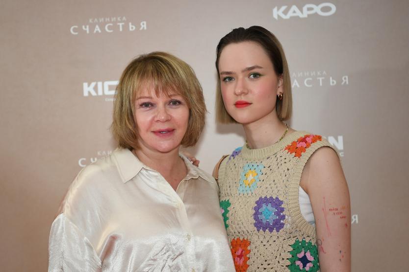 Актриса Елена Валюшкина и ее дочь Мария на премьере фильма «Клиника счастья» режиссера Александр Кириенко в кинотеатре «Каро 11 Октябрь»