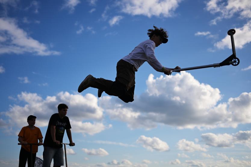 Ребята на велосипедах или самокатах — сами по себе. Они чаще на своих площадках отрабатывают какие-то трюки.