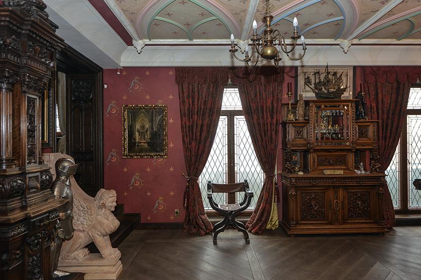 Когда я задумал построить этаж в стиле готики, мне пришлось много ездить. Сначала я думал, что смогу купить мебель здесь, в антикварных магазинах и салонах. Но выбор оказался скудным, и к тому же все стоило очень дорого. Поэтому, купив несколько вещей в России, я решил, что лучше и дешевле будет все остальное приобрести в Европе. Это тоже было непросто — приходилось ездить по разным странам и городам, участвовать в антикварных аукционах. За все, что покупал и ввозил в Россию, приходилось платить огромные налоги.