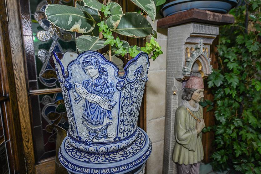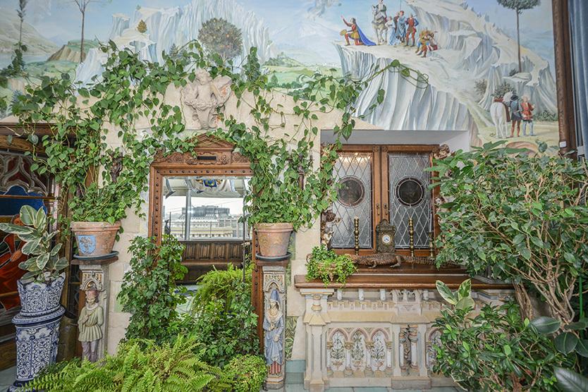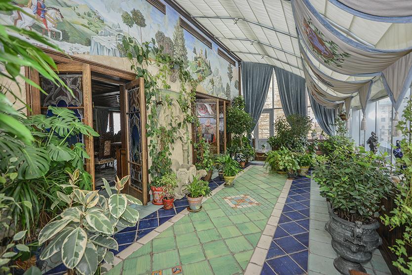 В зимнем саду у меня есть несколько средневековых элементов: например, портал из французской церкви, XV век, я купил его в антикварном магазине в Париже. Стены расписаны вручную, все сюжеты сделаны в стиле XV-XVI века, но лица современные. Там есть мой сын Стефано, девушка, с которой я тогда встречался — Маша, писатель-сатирик Трушкин, лицо актера Бориса Щербакова — моего старинного друга.