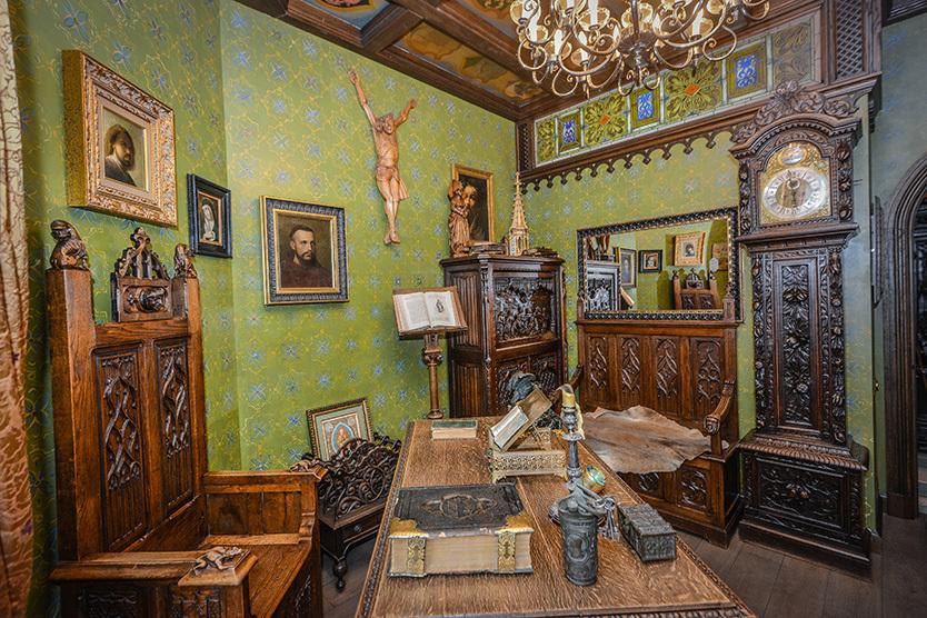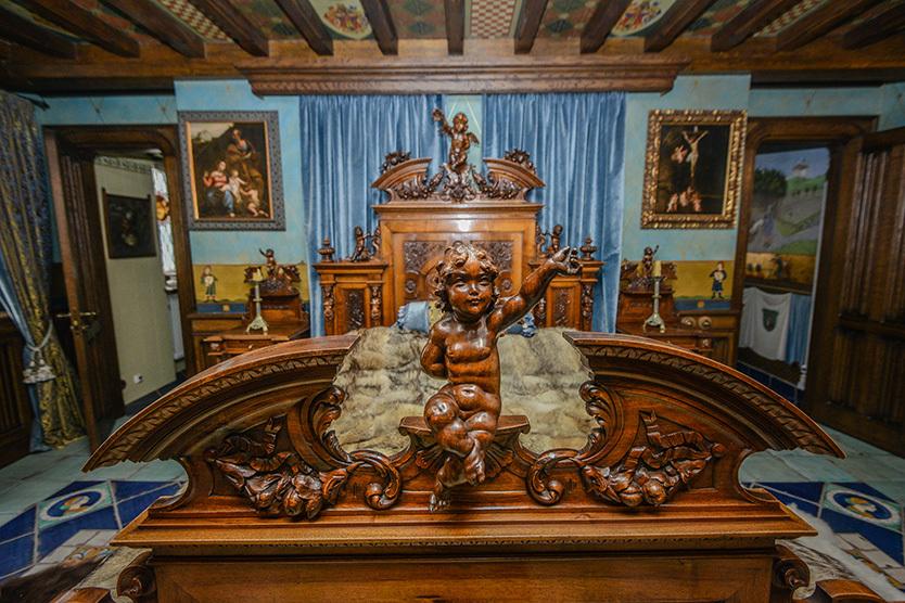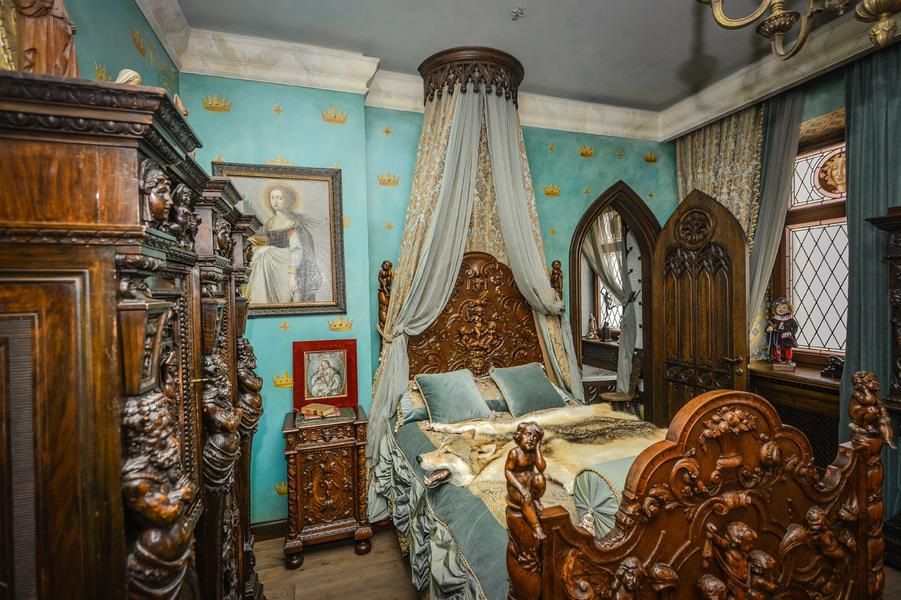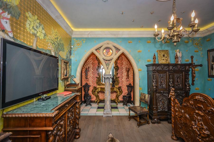 Из всех уровней я дольше всего делал готический этаж. Там все комнаты расписаны вручную — от кабинета до кухни и ванной. В одной спальне у меня сейчас стоит кровать Марии Антуанетты. Мне приходится всем объяснять, что она не спала на ней перед казнью, это кровать из австрийского дома, где она жила, когда была маленькой.