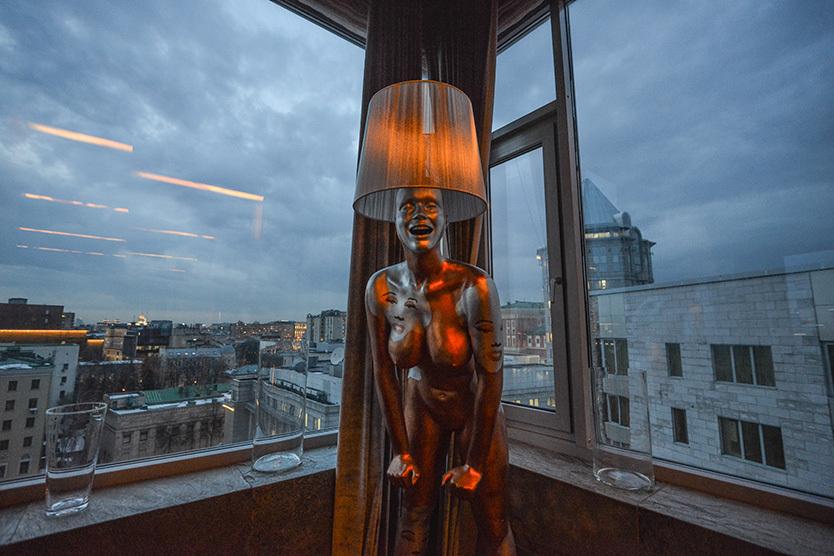 В дальнем углу стоит скульптура Мэрилин Монро, купленная мною по случаю на развале под Парижем. Я ее расписал, и сделал светильник. Но самое ценное на верхнем этаже — это не те предметы, которые там находятся, а невероятно красивый вид на Москву.