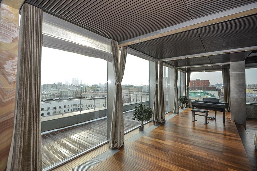 В начале 2000-х я купил один коммерческий этаж, потом приобрел второй и третий. Верхний этаж я перестроил — сделал его в стиле хайтек, а вместо кирпичных стен поставил стекло, чтобы через панорамные окна видеть Москву со всех сторон.