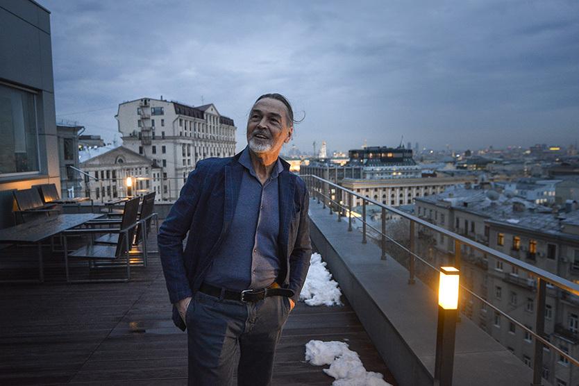 Никас Сафронов на балконе своего дома в Брюсовом переулке