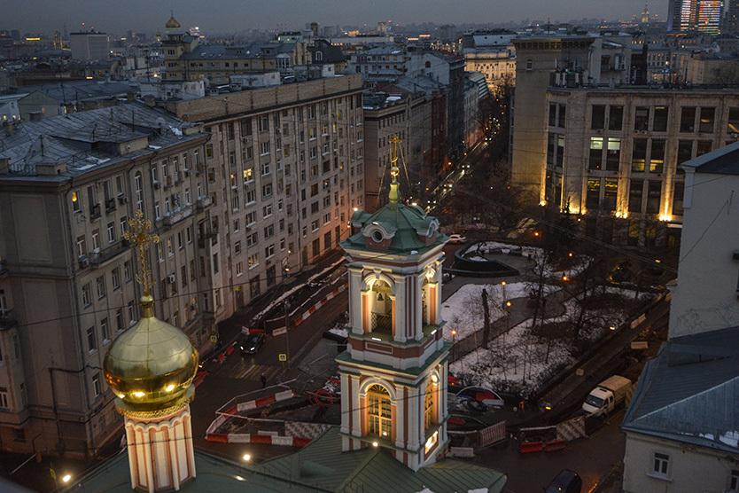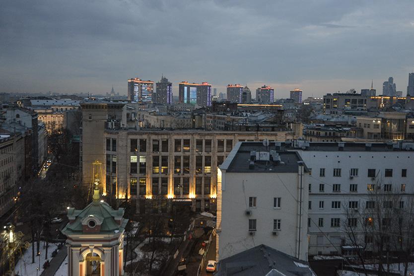 С верхнего этажа и с балкона виден Кремль, напротив — Дом композиторов, а на моей улице — дом Мейерхольда с лифтами наружу. С одной стороны открывается вид на улицу Тверская, с другой — Консерватория с памятником Чайковскому, который смотрит на нашу улицу.