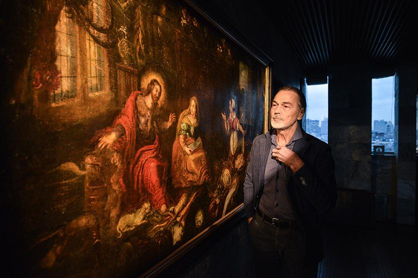 Никас Сафронов у картины «Марфа и Мария» в пентхаусе