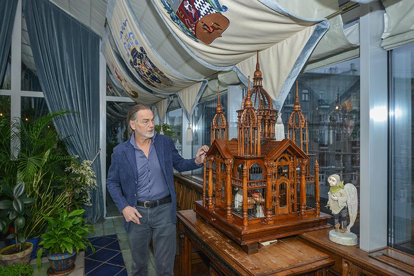 В достроенных этажах дома, которые я приобрел, я продолжил его историю, наполнив их атмосферой Европы, как современной, так и исторической. В моей квартире есть и современная мебель из Италии, Англии, Испании. Также из многих европейских стран была привезена антикварная мебель, имеющая интересную историю.