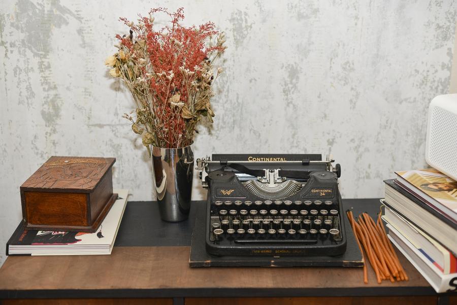 «Это своеобразный алтарь. На нем книги и альбомы для вдохновения. 33 свечи, привезенные из храма Гроба Господня в Иерусалиме. Печатная машинка из Башкирии. Я ездила на венчание к родственникам в Уфу, и там мы зашли к митрополиту Никону. Оказалось, что он коллекционирует печатные машинки, и я с восторгом ребенка разглядывала его коллекцию. Тогда он вручил мне эту машинку и катушки с чернилами, — демонстрирует раритет Анна. — Катушки я храню в холодильнике. У меня там вообще только сыр, вино и катушки для печатной машинки...»