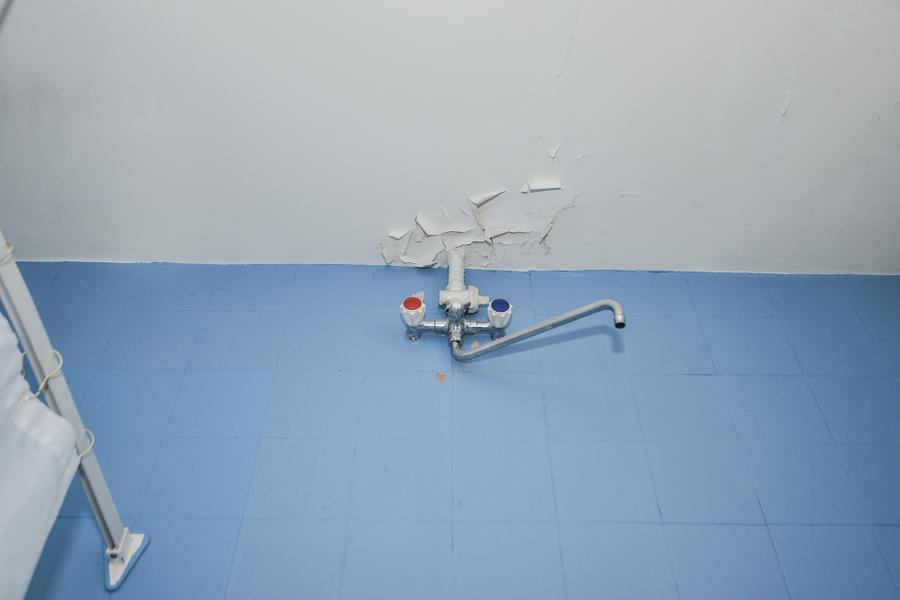«До этого тут была оранжевая плитка, ее покрасили в синий цвет. Еще все интересуются, почему в ванной кран под потолком. Но я не скажу, потому что сама не знаю».