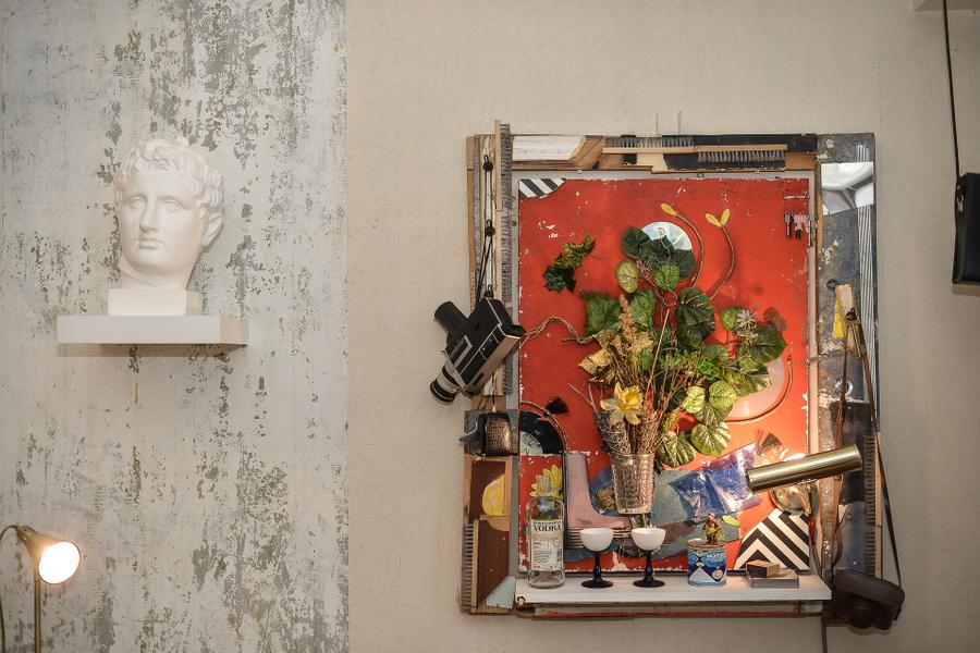 «Здесь осталось много художественных работ, которые я бережно храню. Большинство из них даже не картины, а коллажи или инсталляции. Многие не понимают эти работы. Только однажды ко мне в гости зашел куратор музея "Гараж" и, лишь взглянув на эту картину, отметил, что она "манифест феминизму"… Но тут уже появились и мои картины. Например, большая "Фрида". Она появилась здесь не просто так, а для того, чтобы закрыть отпечаток той огромной пилы над диваном, которую я сняла», — смеется девушка.