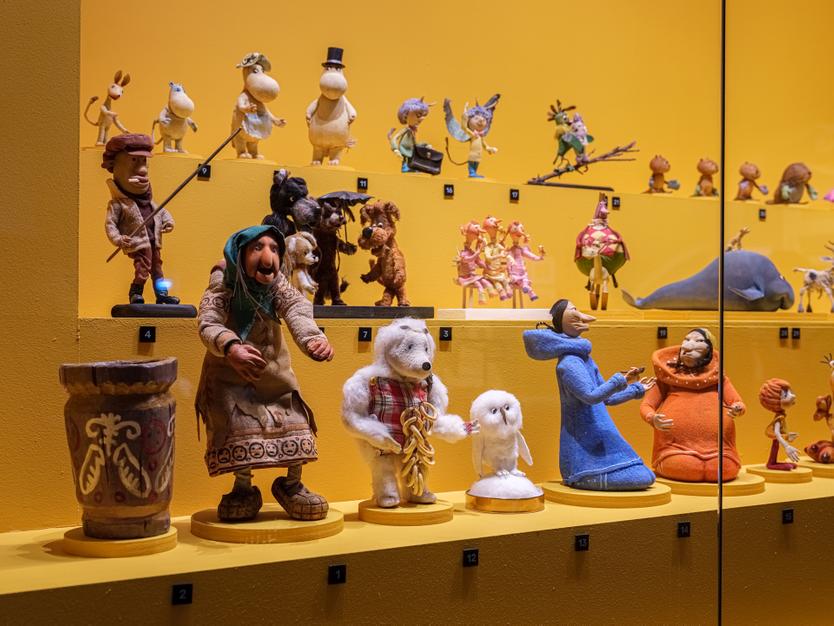 В экспозиции представлены редкие эскизы, игровые куклы и декорации к любимым мультфильмам. Так, например, на выставке можно узнать, как могли бы выглядеть Дядя Федор и Пятачок: в одном из залов можно ознакомиться с первыми набросками художников.