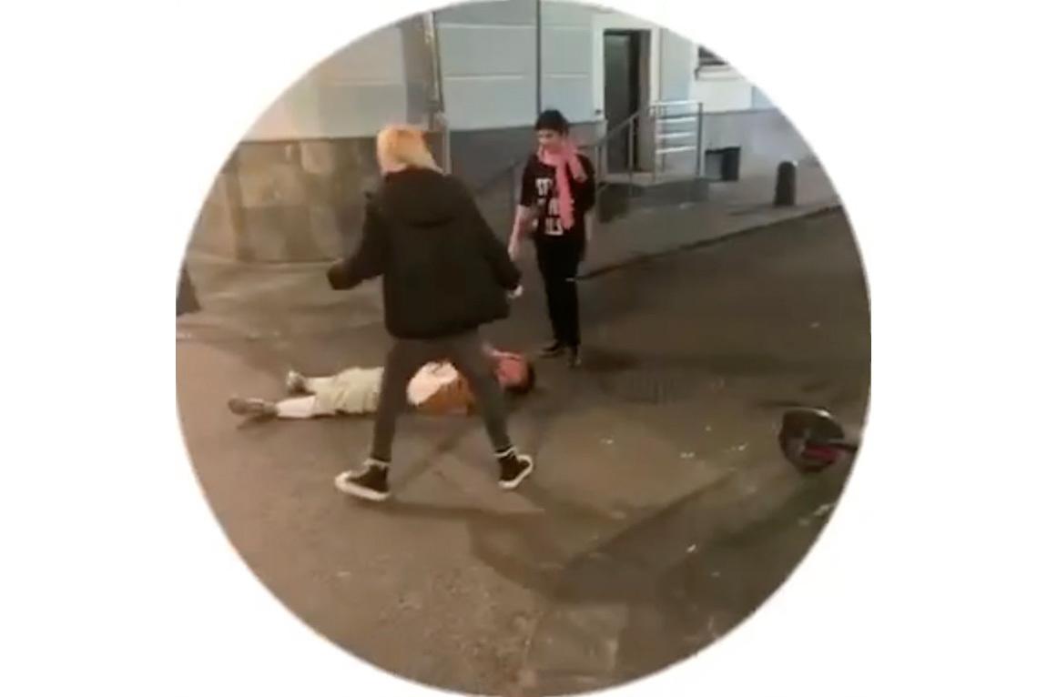 Групповое избиение молодого человека в центре Москвы попало на видео