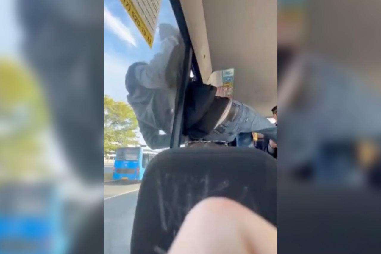 Карманник украл у пассажирки маршрутки в ТиНАО смартфон, попытался сбежать через окно и попал на видео, опубликованное в Telegram-канале «МК: срочные новости».