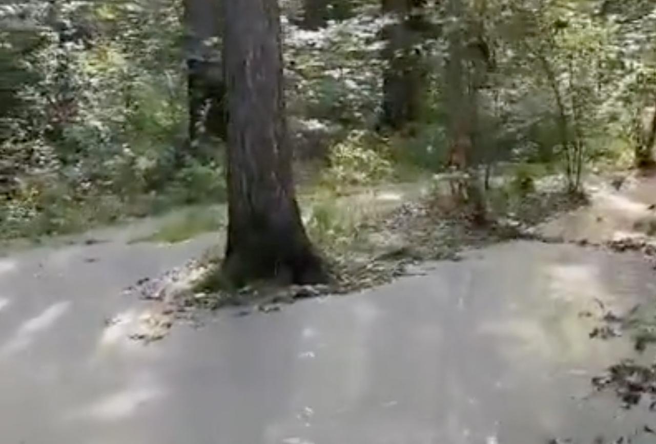«Гуляя в лесу между СНТ "Дубки" и платной автодорогой Северный обход Одинцово, заметили странное явление. Лес из-под земли заливает неизвестное вязкое вещество. Прибывает интенсивно. Это не вода. Густое и липкое на ощупь, без запаха», — пояснили авторы видео.