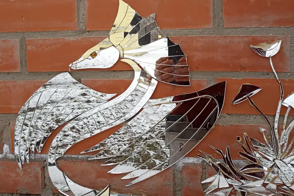 «Новая работа проекта #небесныерыбы в Петровском парке», — подписала снимки автор поста. В кадр попали изображения сказочных растений и существ, выполненные из зеркал и приклеенные к кирпичным стенам.