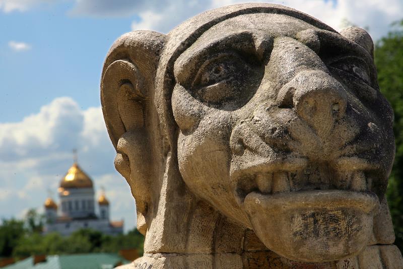 В XIX веке пара львов появилась под стенами Кремля в Александровском саду. Они увенчали грот «Руины», который возвели здесь в память о московских разрушениях во время войны 1812 года.