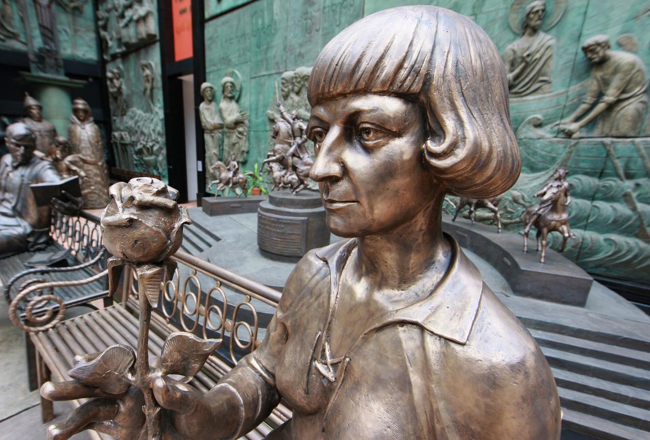 «Интересно, почему босиком?» — обратился к пользователям автор сделанного у галереи Церетели в Москве фото. Скульптор изобразил поэтессу сидящей на скамье с розой в руках.